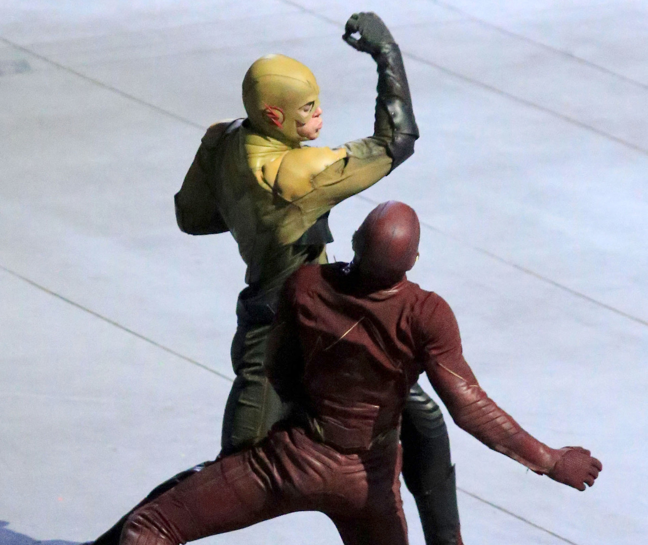 Some new photos have popped up from the set of “The Flash” currently filming in Vancouver, Canada. These were taken on October 8, 2014. In the photos, the Flash is apparently not doing so well against his arch enemy, the Reverse Flash. The pilot for the show was actually very entertaining and did very well in the ratings. Expect to see it stick around for quite a long while.